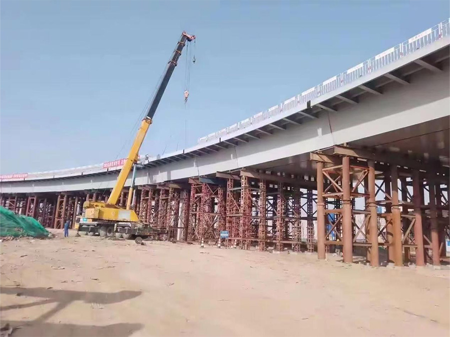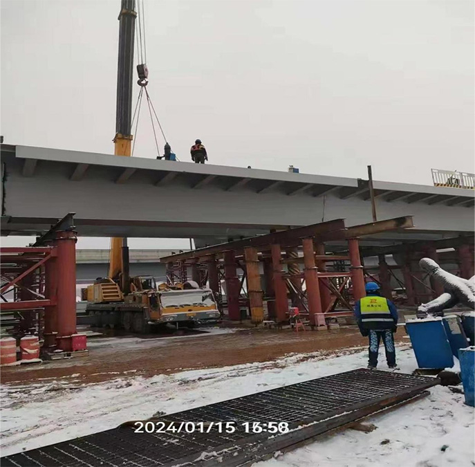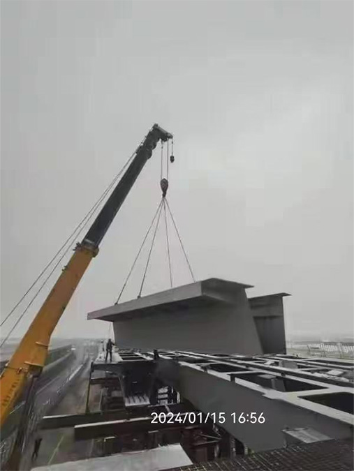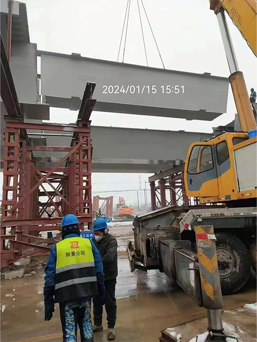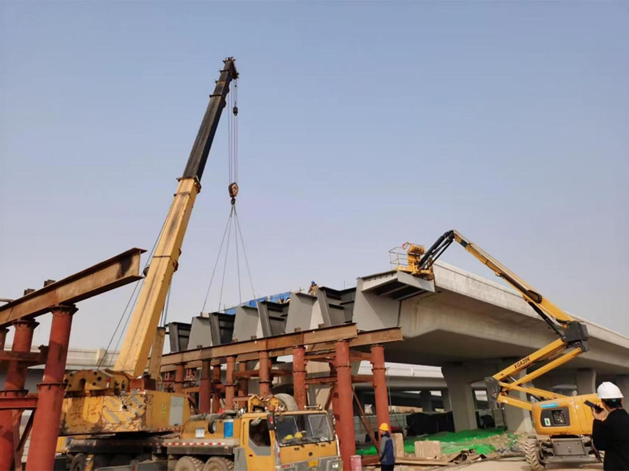 陜西重型機械制造有限公司承擔的航站樓出場道路高架橋項目中的400多塊鋼箱梁,其中50%以上的鋼箱梁為新式疊合梁,該疊合梁的結(jié)構(gòu)復(fù)雜程度和單件重量以及多變的外形,為陜重公司的首次加工和安裝,技術(shù)難度大。該項目的參建,對陜重公司鋼結(jié)構(gòu)橋梁的制作和安裝具有劃時代意義。